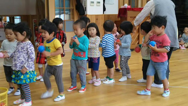 今週の月曜のお話は、 体育の日の話 そして、 じゃんけんや、勝ったら入れられる玉入れを楽しみました。