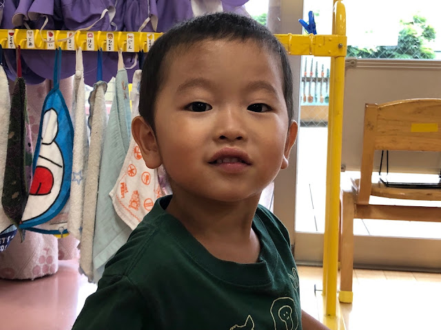 きいろ組3歳児の男の子が、給食を全部食べた後に、この日はおかわりもしました。