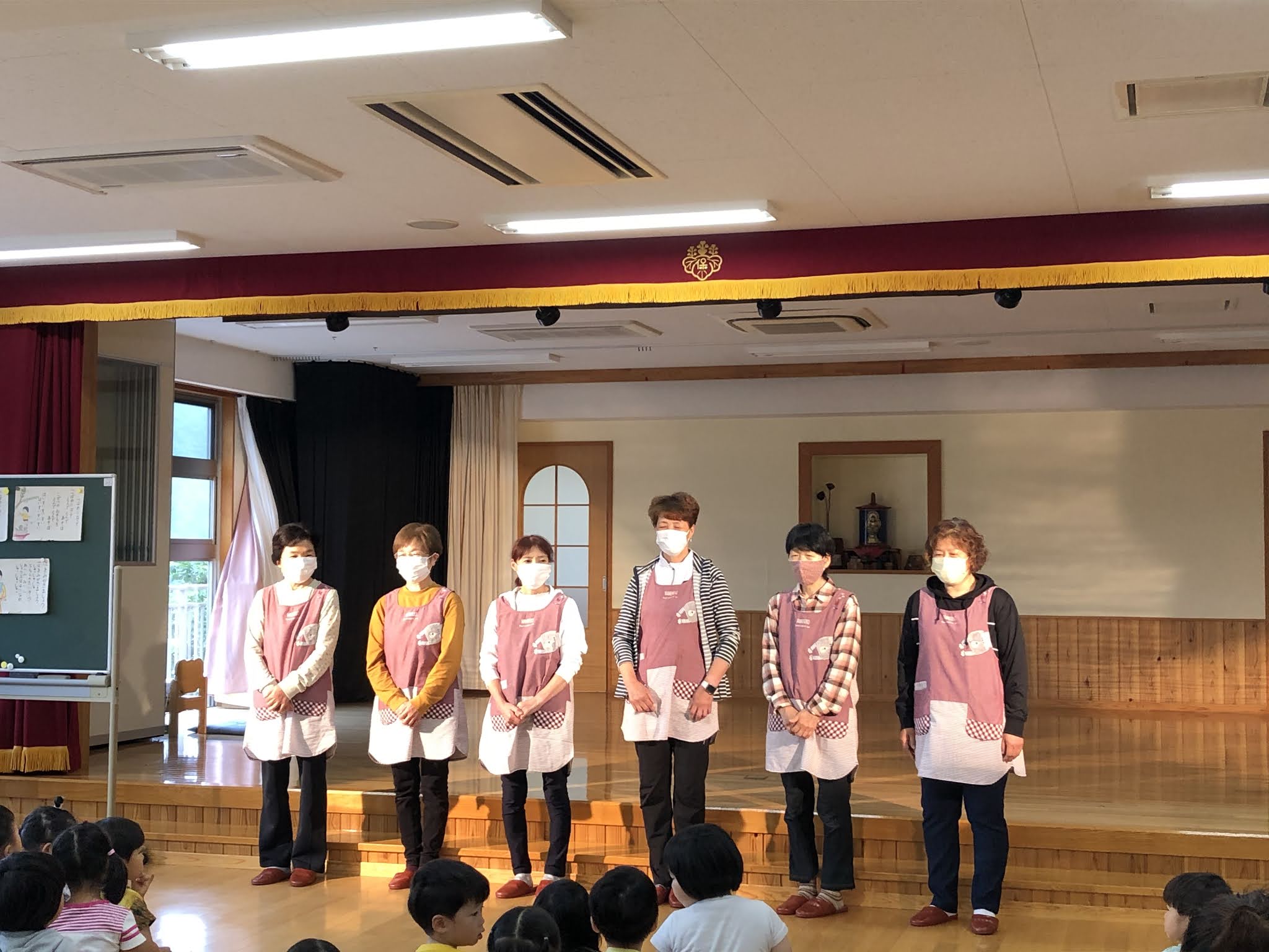 ホールで「おかあさん」と、「大きな古時計」を歌いました。地域ボランティアのほうき星さんが来園し、子どもたちの前で自己紹介をしてくださいました。いつも古里保育園の清掃や行事準備など色々なお手伝いをしてくださっています。今年度もどうぞよろしくお願いいたします。