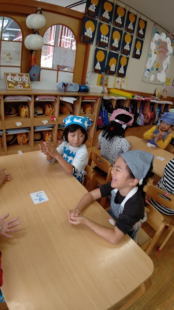 もも組5歳児は、お団子を丸めて