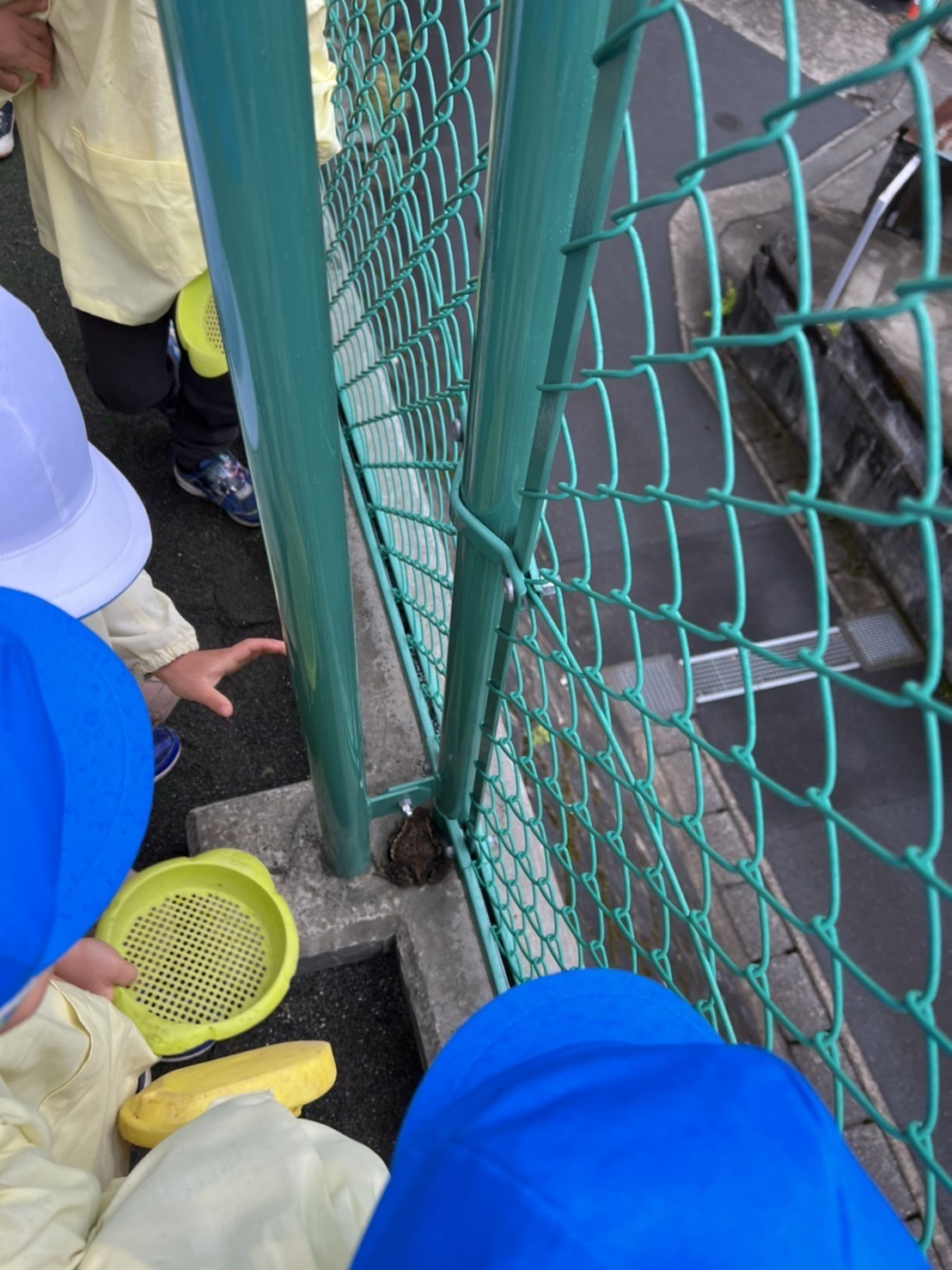 ぼうけんの森に、チョウチョウがたくさん飛んできました。気持ちの良いかぜが、鯉のぼりを泳がせます。チューリップのプランターの下には、カエルが寝ていました。みんなにみつかり逃げ出しました。捕まえて、ぼうけんの森に逃してやりました。古里保育園には、自然がいっばいです。
