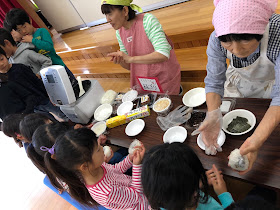 梅干し、昆布、ツナマヨのなかから好きな具を自分で選んで、おにぎりを作りました。